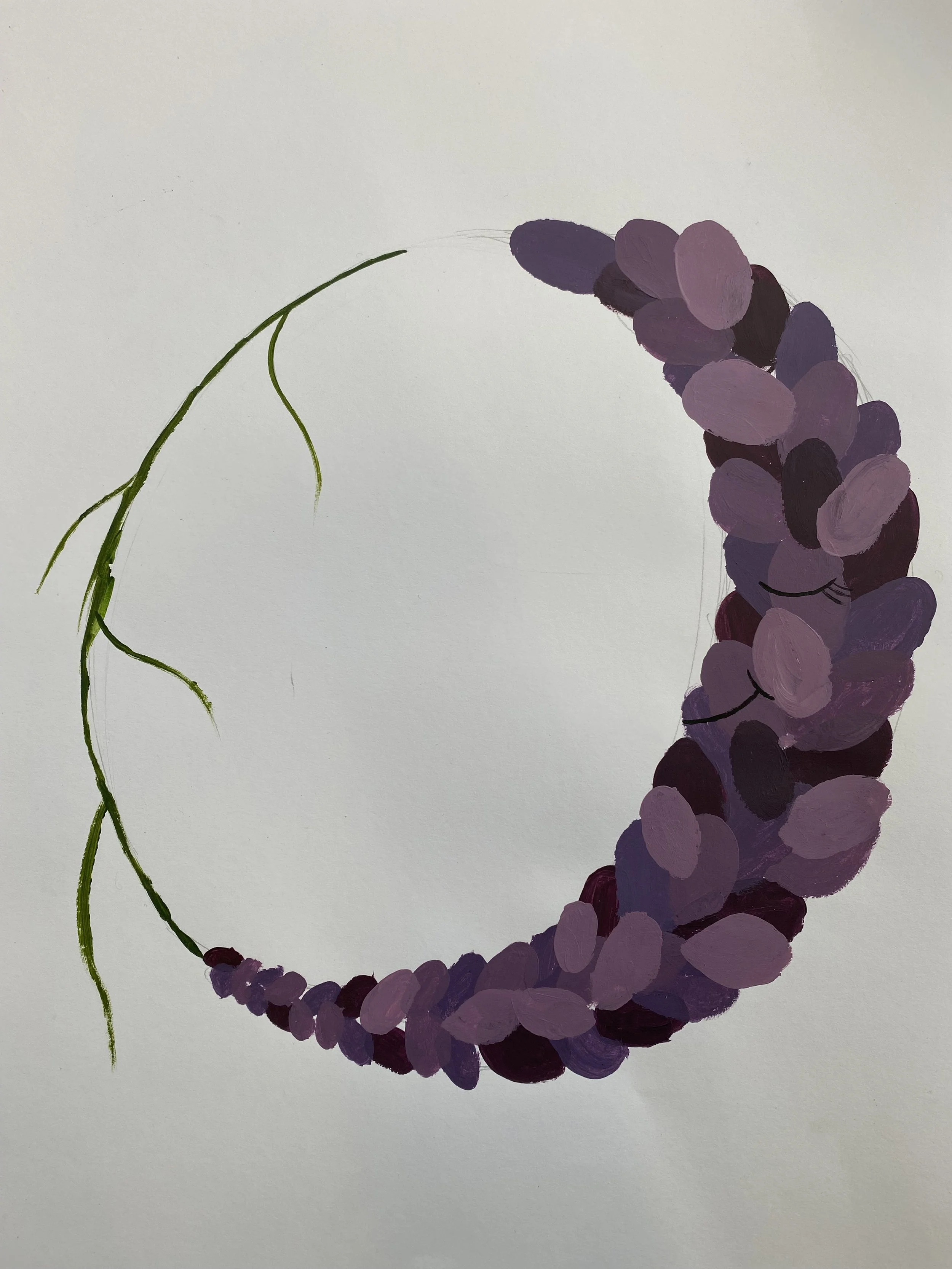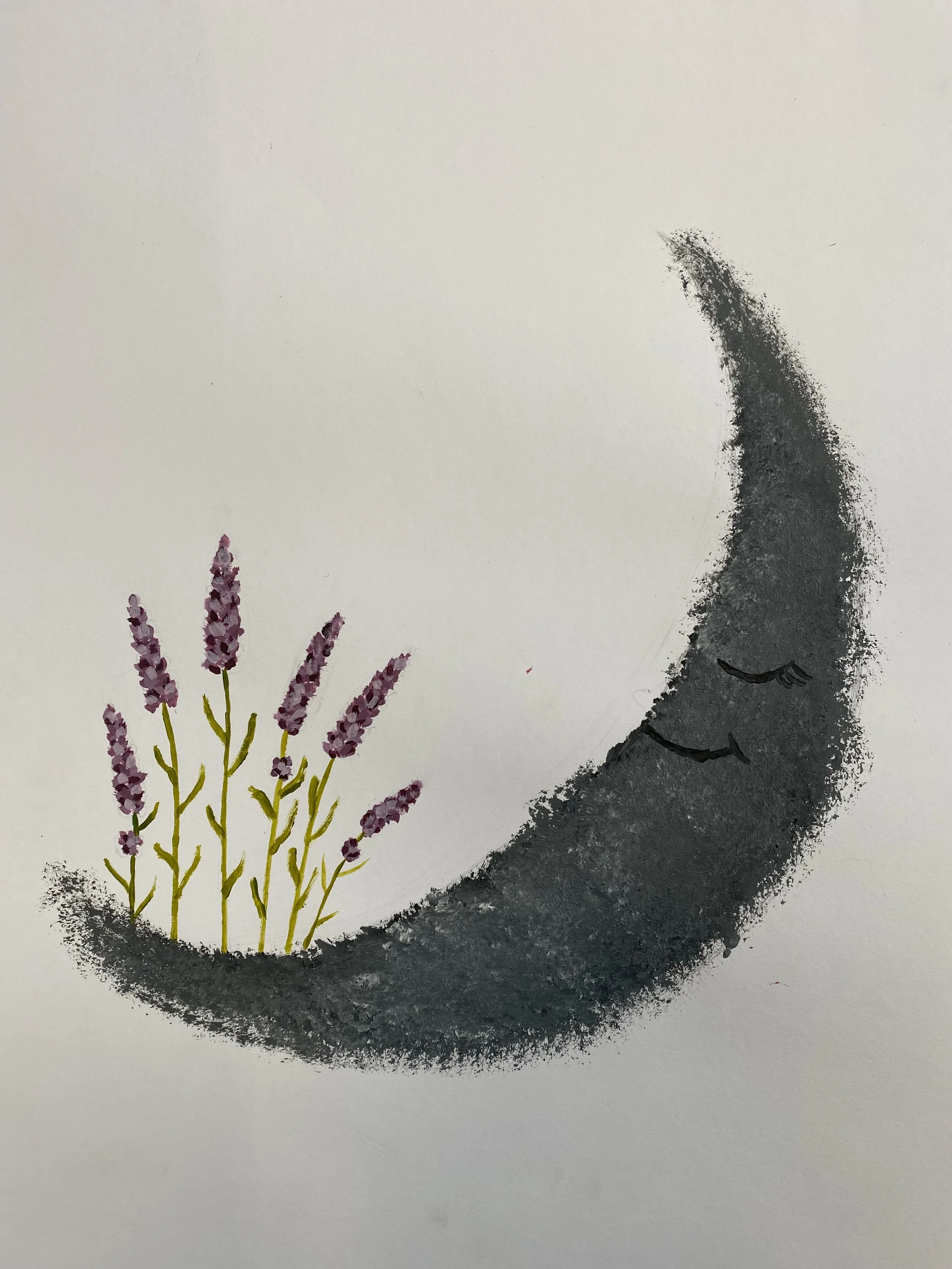 I wanted to show how herbs can help with medical issues and help with day to day struggles. Lavender can be beneficial and helps people with insomnia so I painted a sleeping lavender shaped as the moon.